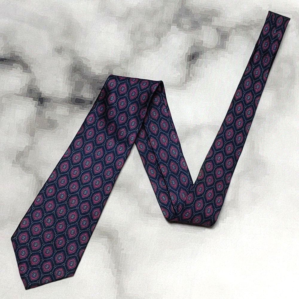 ギラロッシュ Guy Laroche 美品 微光沢 ネクタイ イタリア製 シルク100% パターン柄 濃紺系 ネイビー系 H-008809