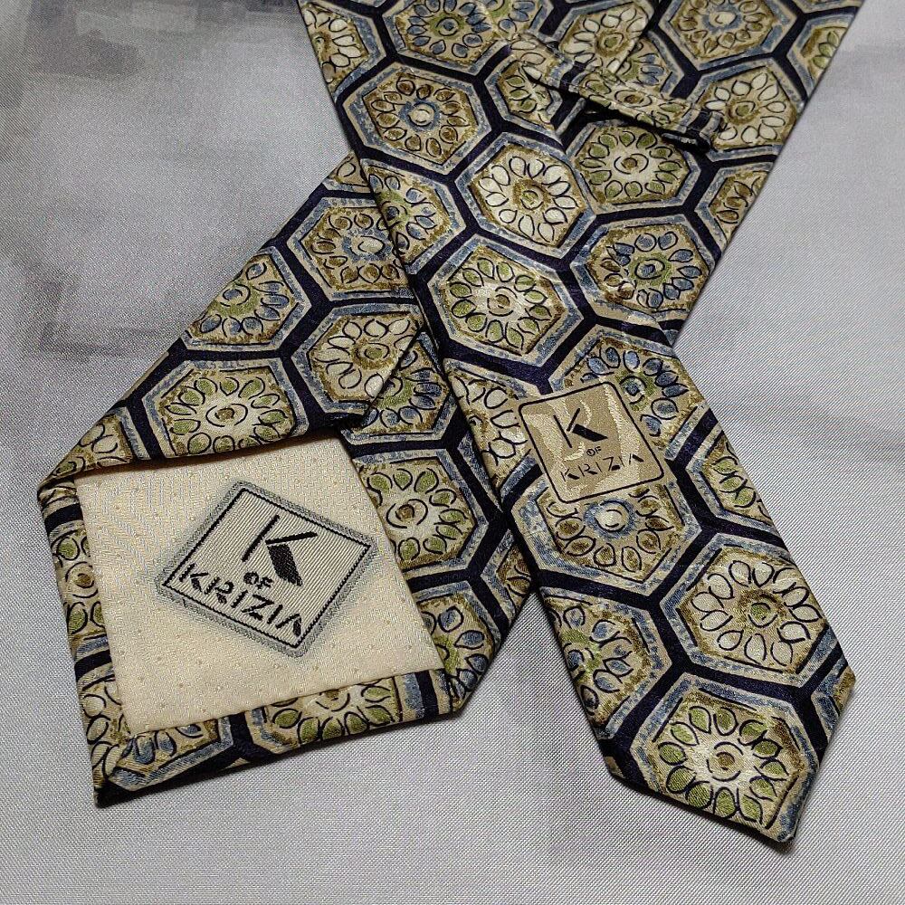 K オブ クリツィア K OF KRIZIA 美品 未使用品 微光沢 ネクタイ シルク100% パターン柄 ミックス H-008813