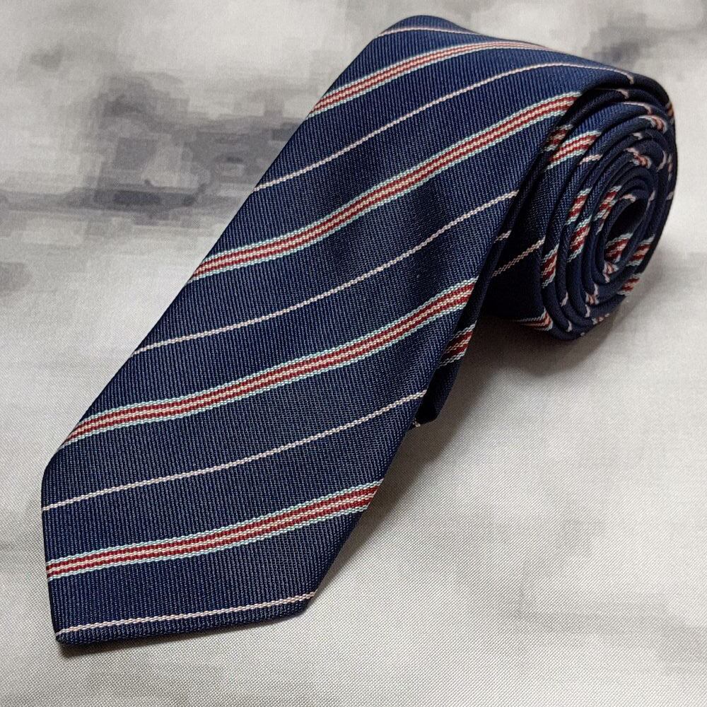 イーストボーイ EASTBOY 美品 微光沢 ネクタイ 斜めストライプ レジメンタル ナロータイ 濃紺系 ネイビー系 H-008818