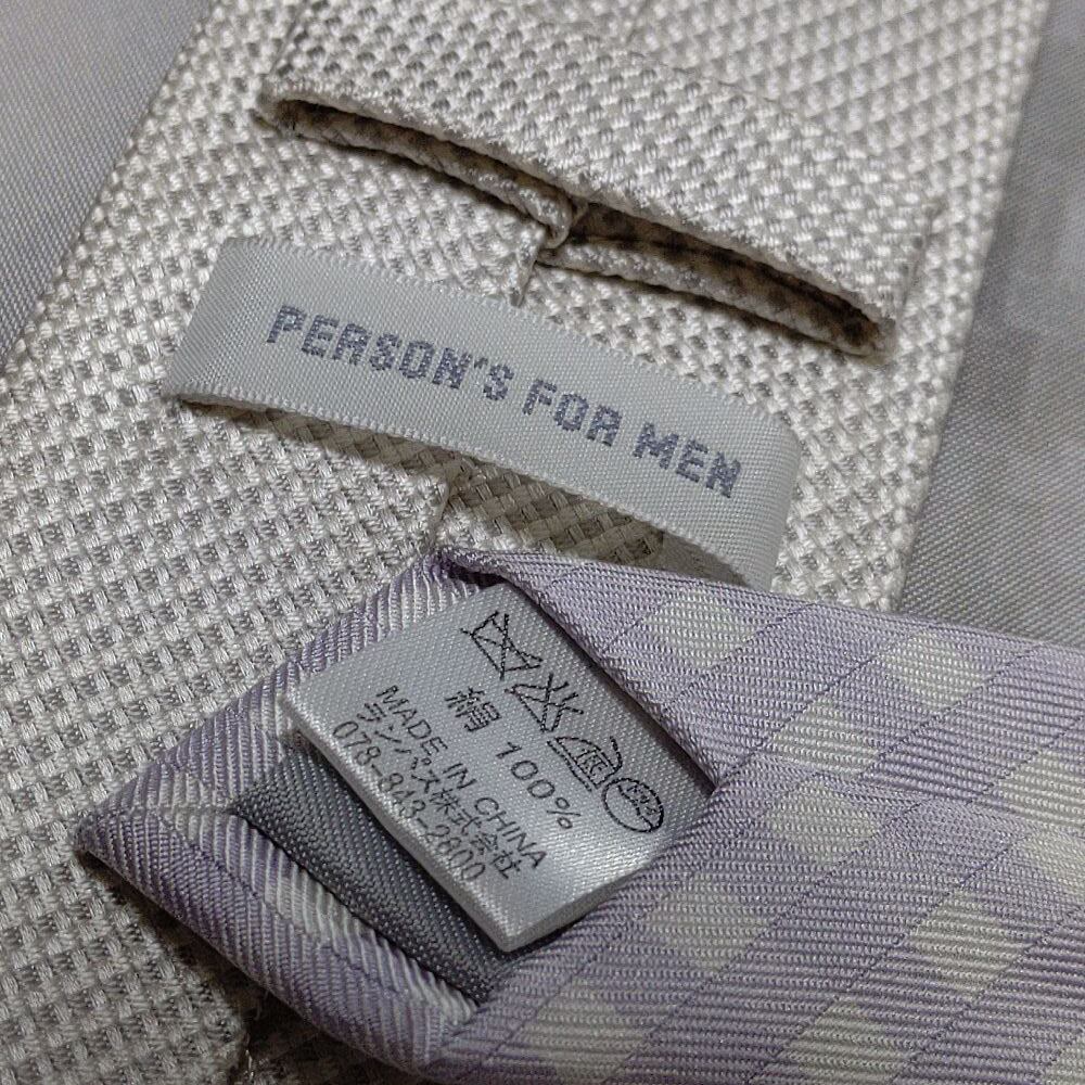 パーソンズフォーメン PERSON'S FOR MEN 美品 微光沢 ネクタイ パターン柄 切替 ナロータイ ミックス H-008820