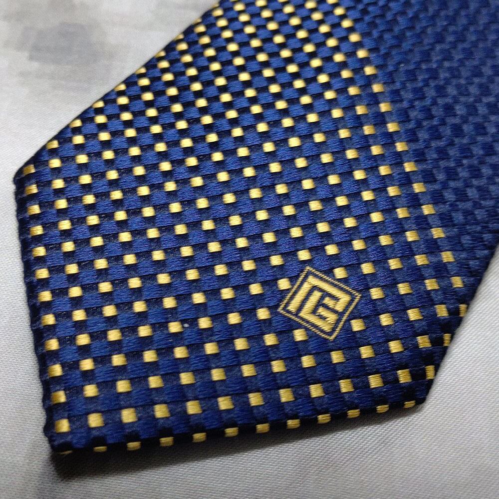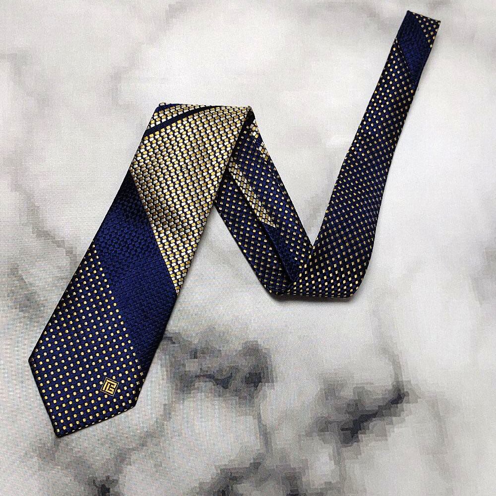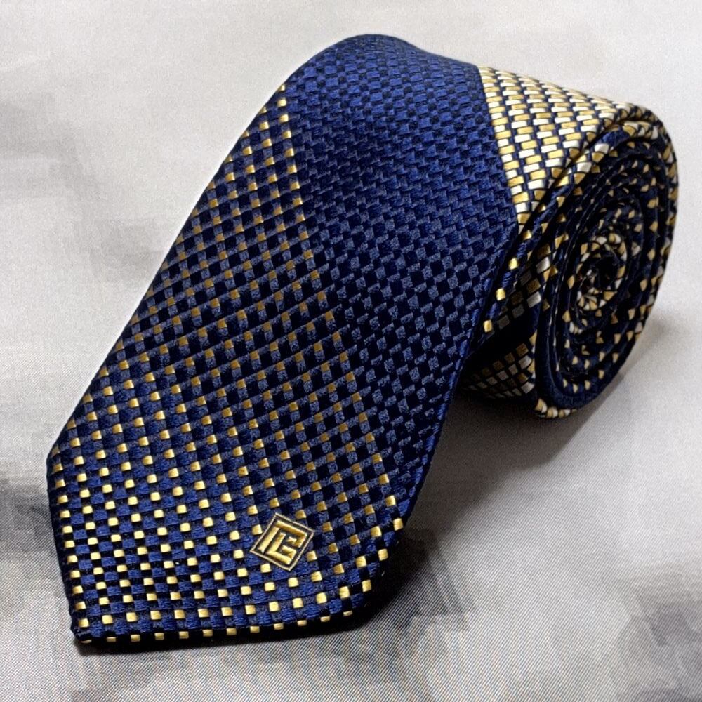 ピエールバルマン PIERRE BALMAIN 良品 微光沢 ネクタイ シルク100% パターン柄 濃紺系 ネイビー系 H-008821