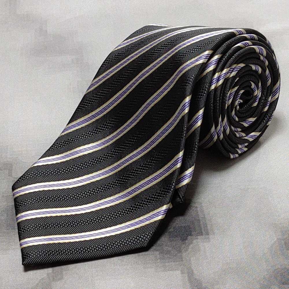 ダナキャランニューヨーク DKNY 美品 微光沢 ネクタイ 斜めストライプ レジメンタル 黒系 ブラック系 H-008841