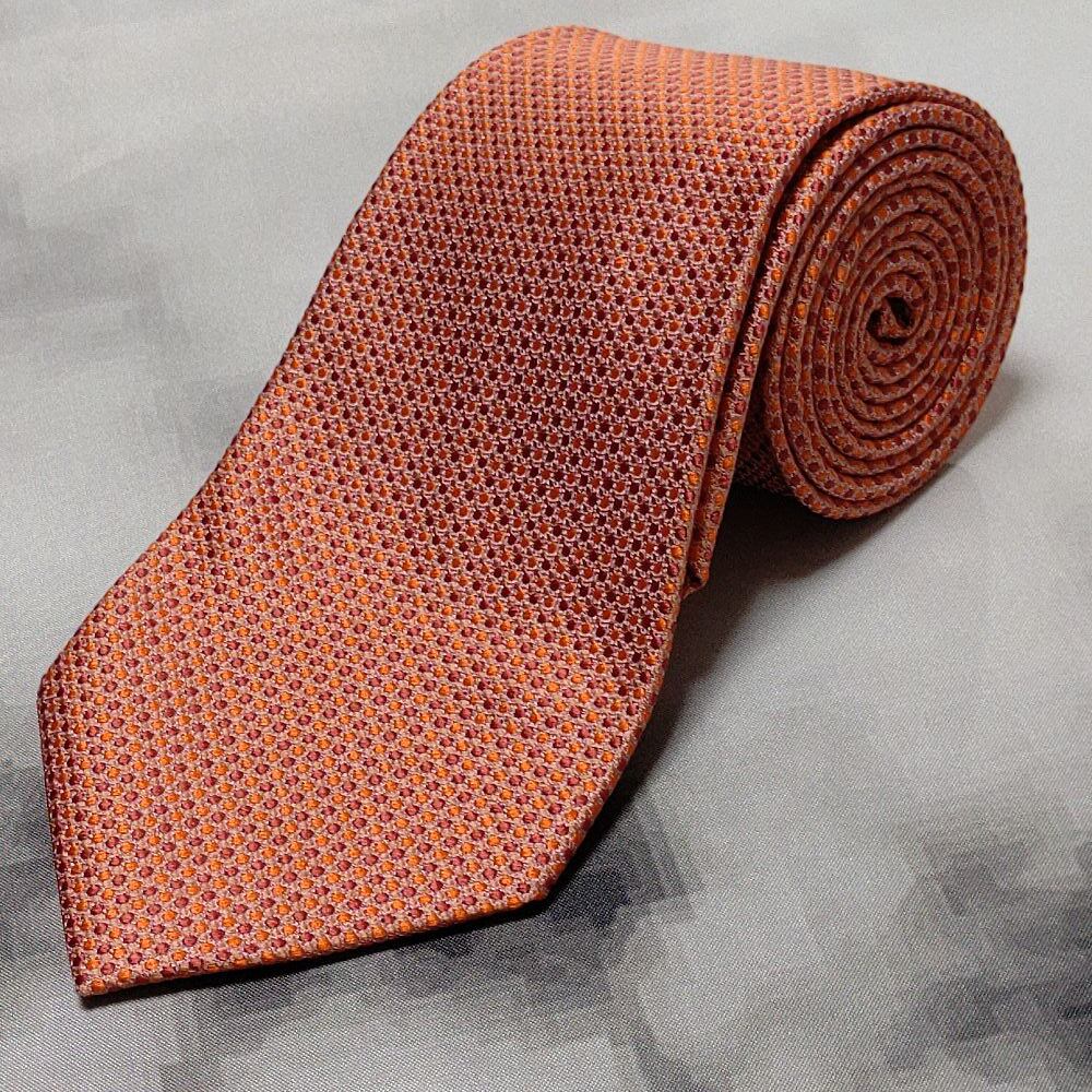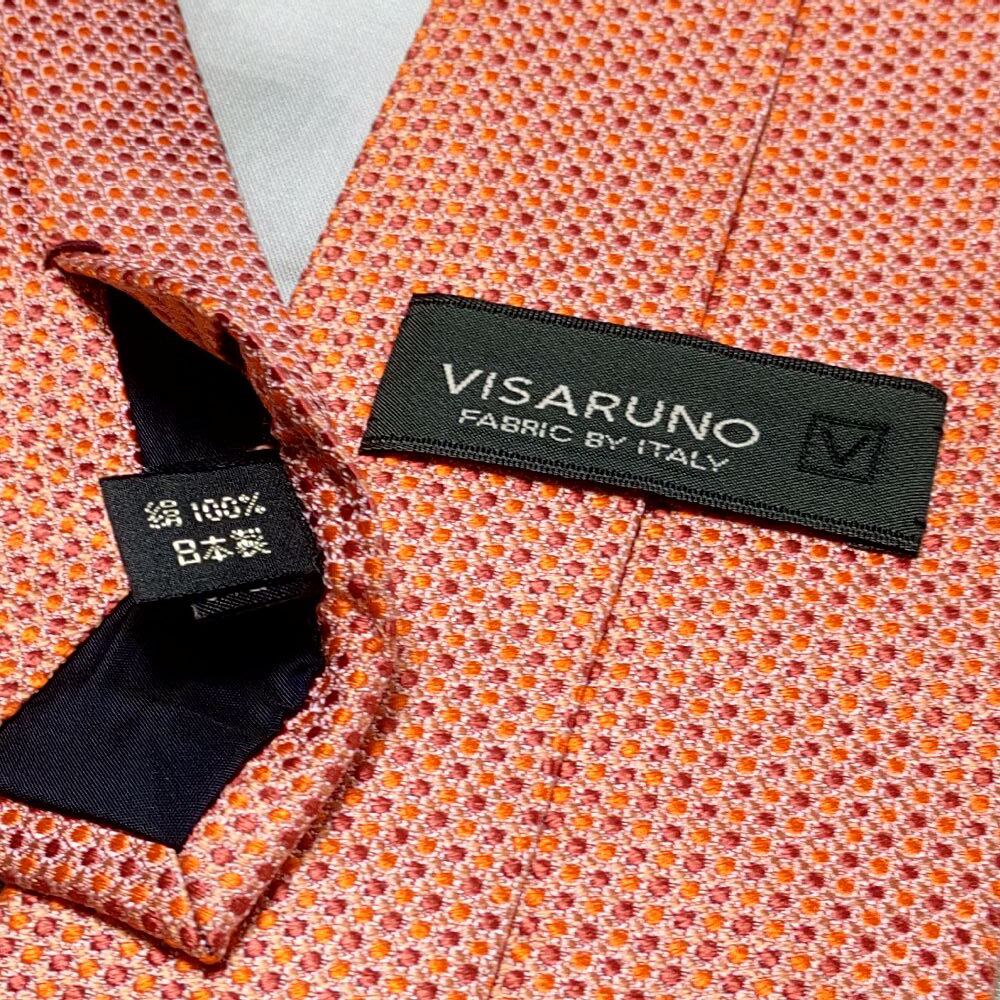 ビサルノ VISARUNO 美品 微光沢 ネクタイ 日本製 シルク100% パターン柄 オレンジ系 H-008851