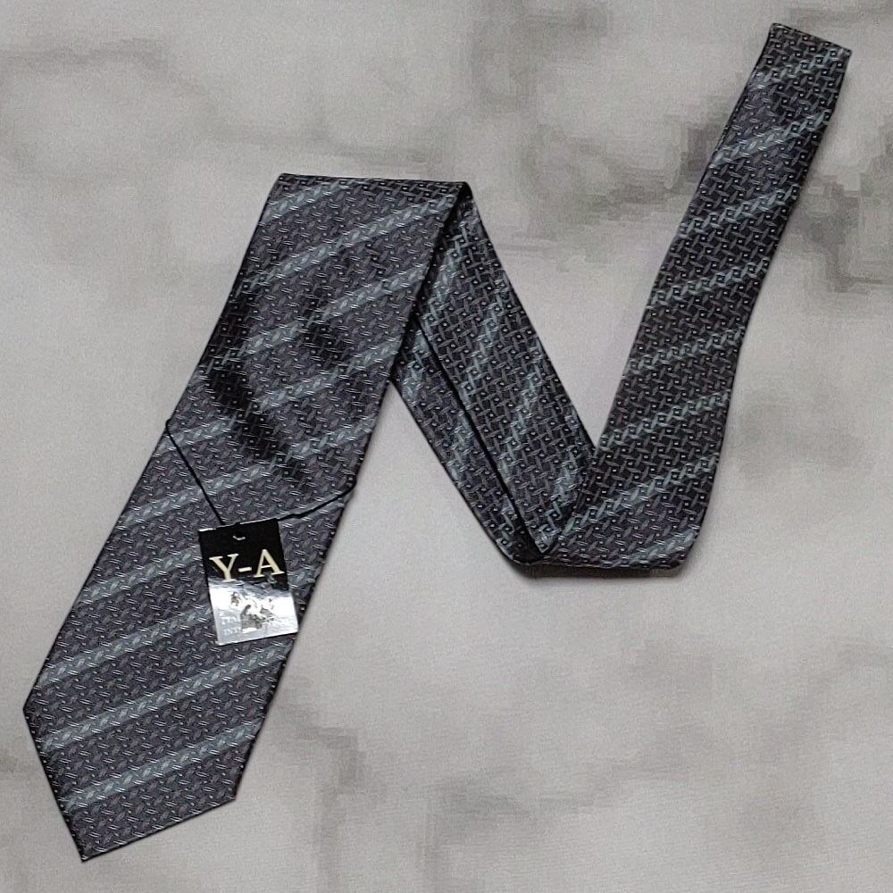 Y-A 美品 新品未使用タグ付 微光沢 ネクタイ 斜めストライプ レジメンタル ミックス I-008857