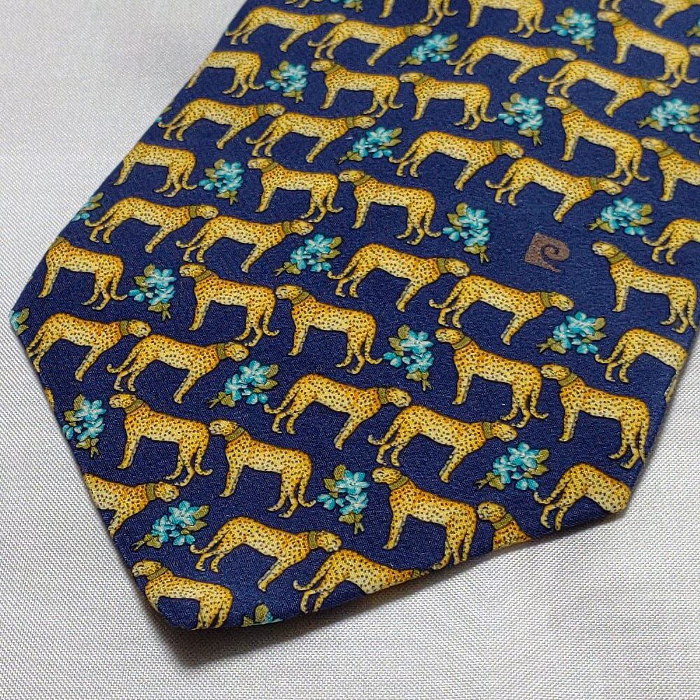 ピエールカルダン pierre cardin 美品 微光沢 ネクタイ シルク100% ヒョウ柄 豹柄 動物 アニマル ミックス I-008865