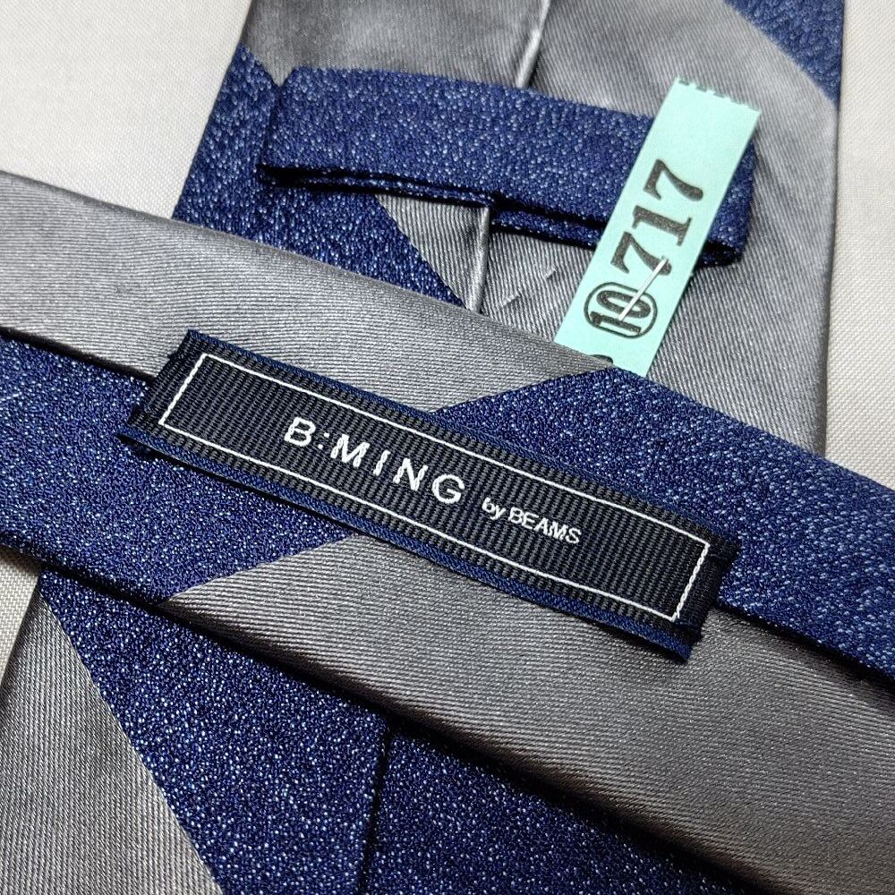 B MING by BEAMS 良品 クリーニング済 微光沢 ネクタイ シルク100% 斜めストライプ レジメンタル ミックス I-008873