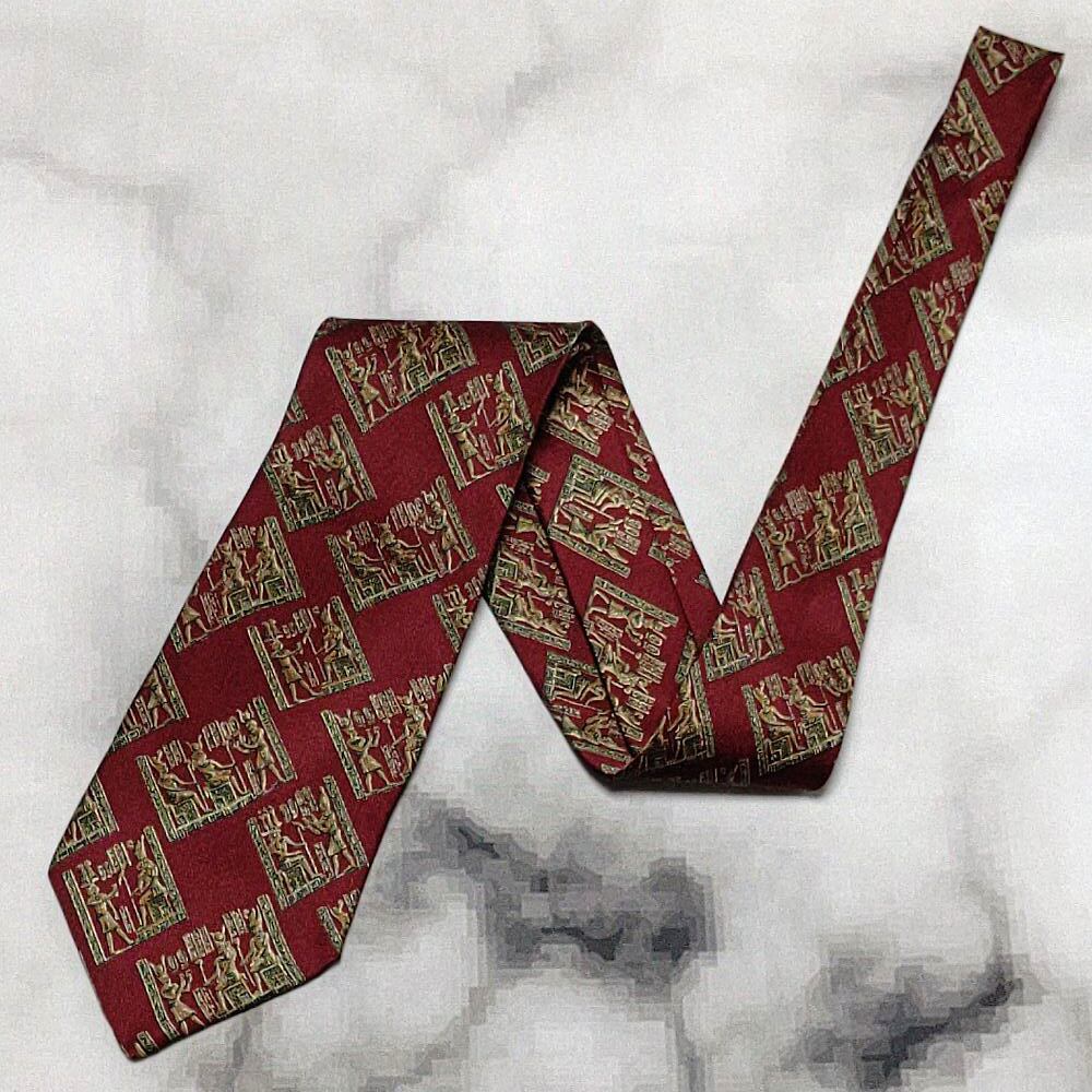 ビザン BYZAN 美品 未使用品 微光沢 ネクタイ シルク100% エジプト調 ワインレッド系 赤系 I-008886