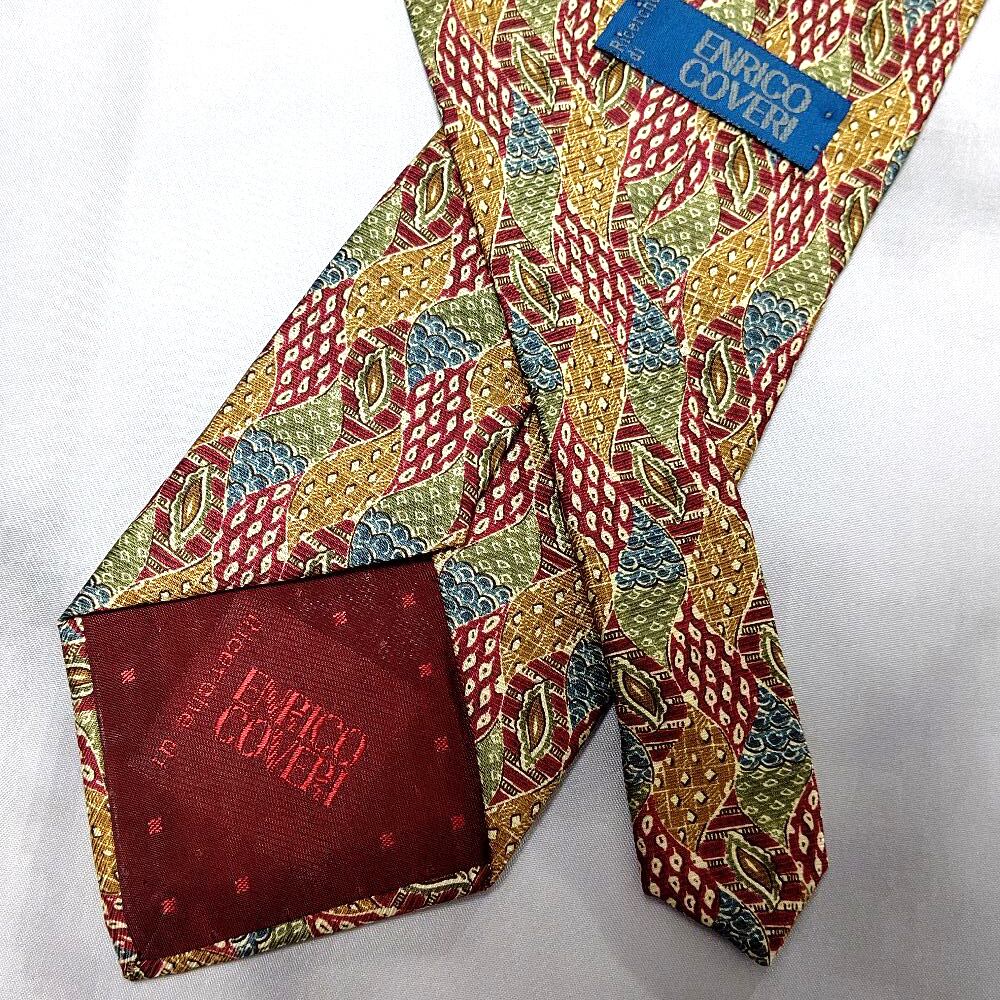 エンリココベリ ENRICO COVERI 美品 微光沢 ネクタイ シルク100% パターン柄 ミックス I-008900