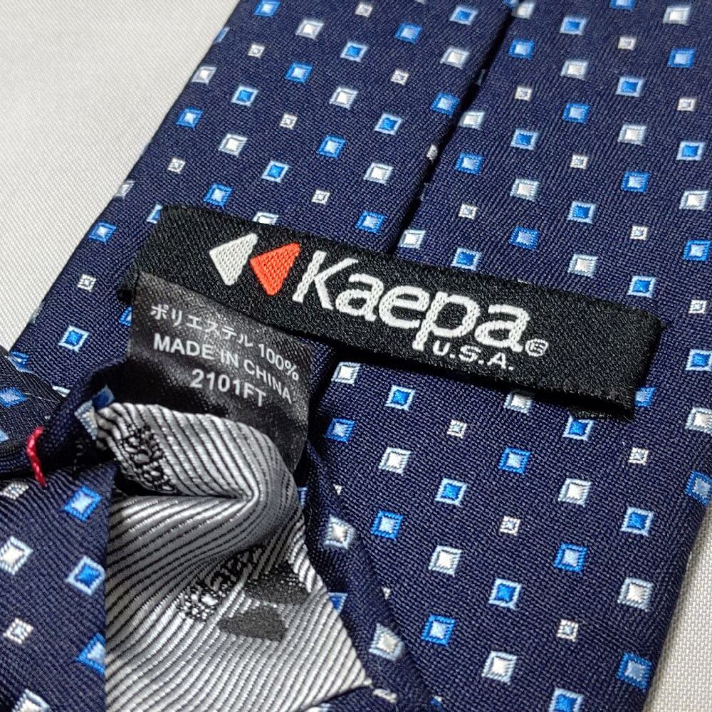 ケイパ Kaepa 美品 未使用品 微光沢 ネクタイ ポリエステル100% ブロックドット柄 濃紺系 ネイビー系 I-008904