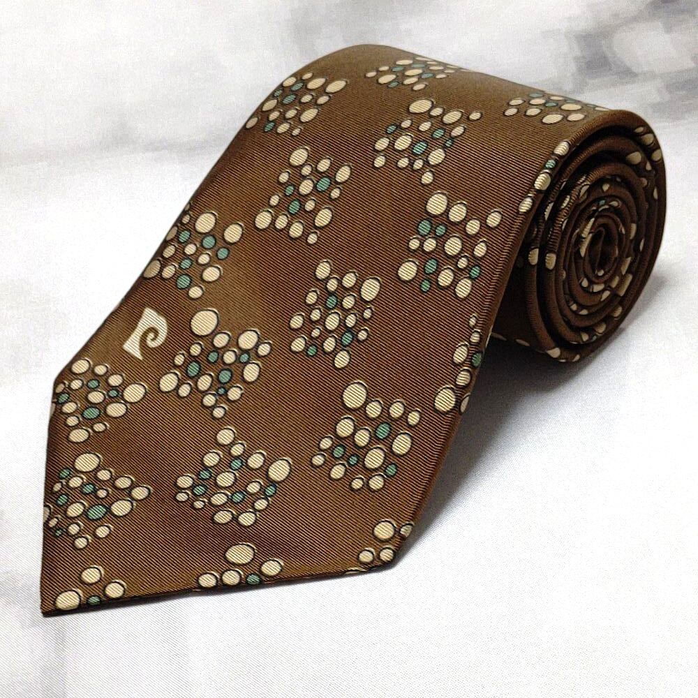 ピエールカルダン pierre cardin 美品 微光沢 ネクタイ シルク100% パターン柄 茶系 ブラウン系 I-008913