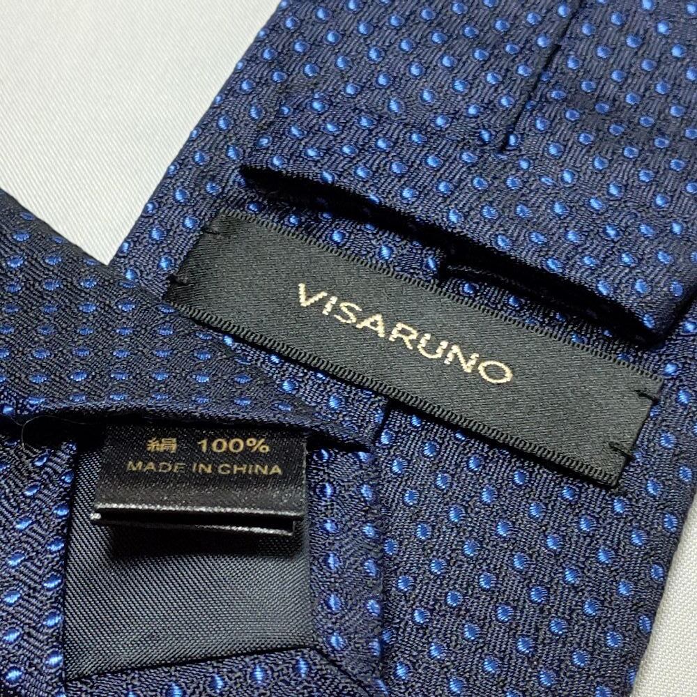 ビサルノ VISARUNO 美品 微光沢 ネクタイ シルク100% ドット柄 濃紺系 ネイビー系 J-008930