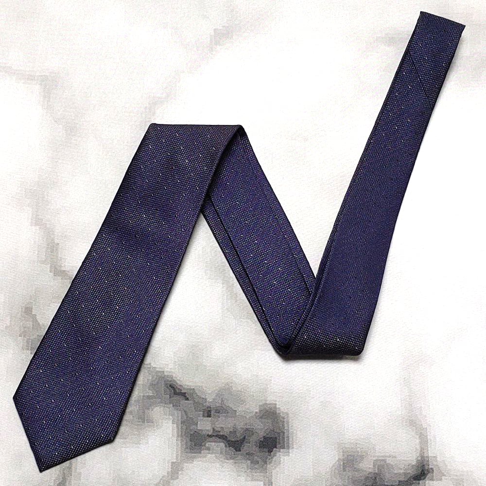 スーツセレクト SUIT SELECT 美品 微光沢 ネクタイ シルク100% ドット柄 濃紺系 ネイビー系 J-008937
