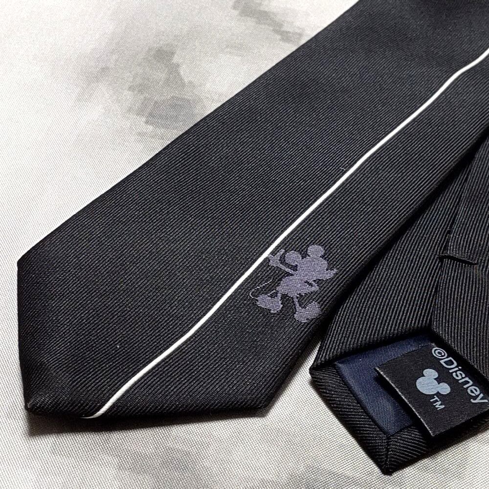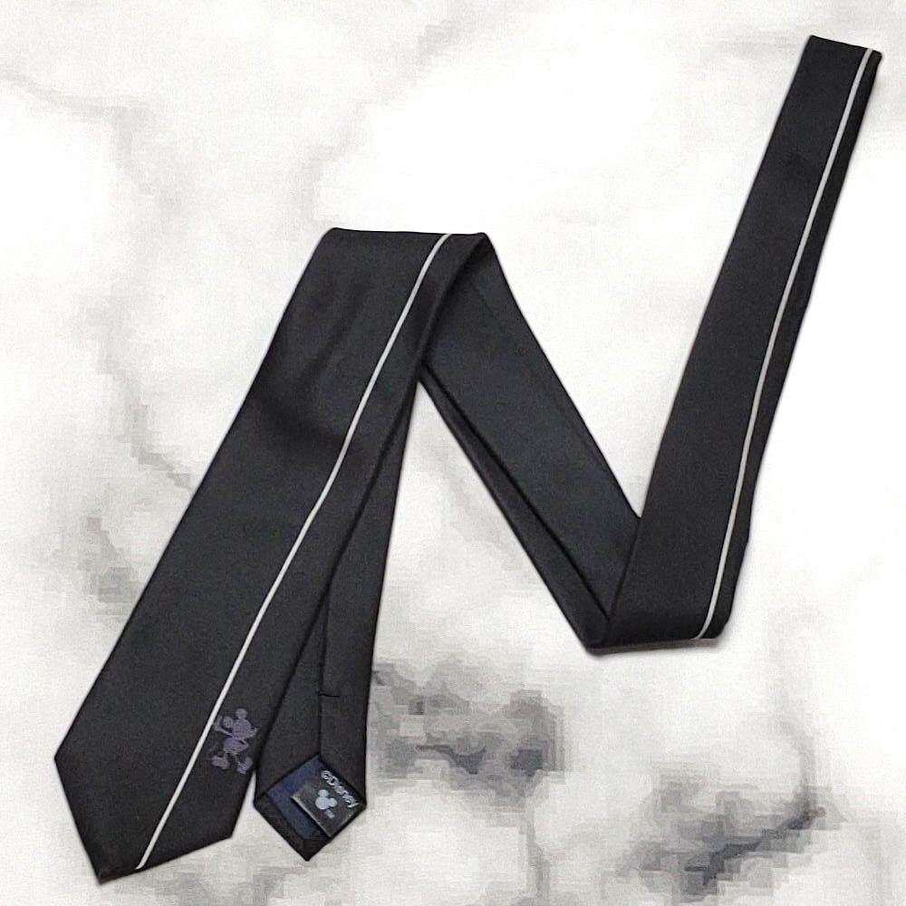ディズニー Disney 良品 微光沢 ネクタイ ミッキー シルエット ライン使い 黒系 ブラック系 J-008938