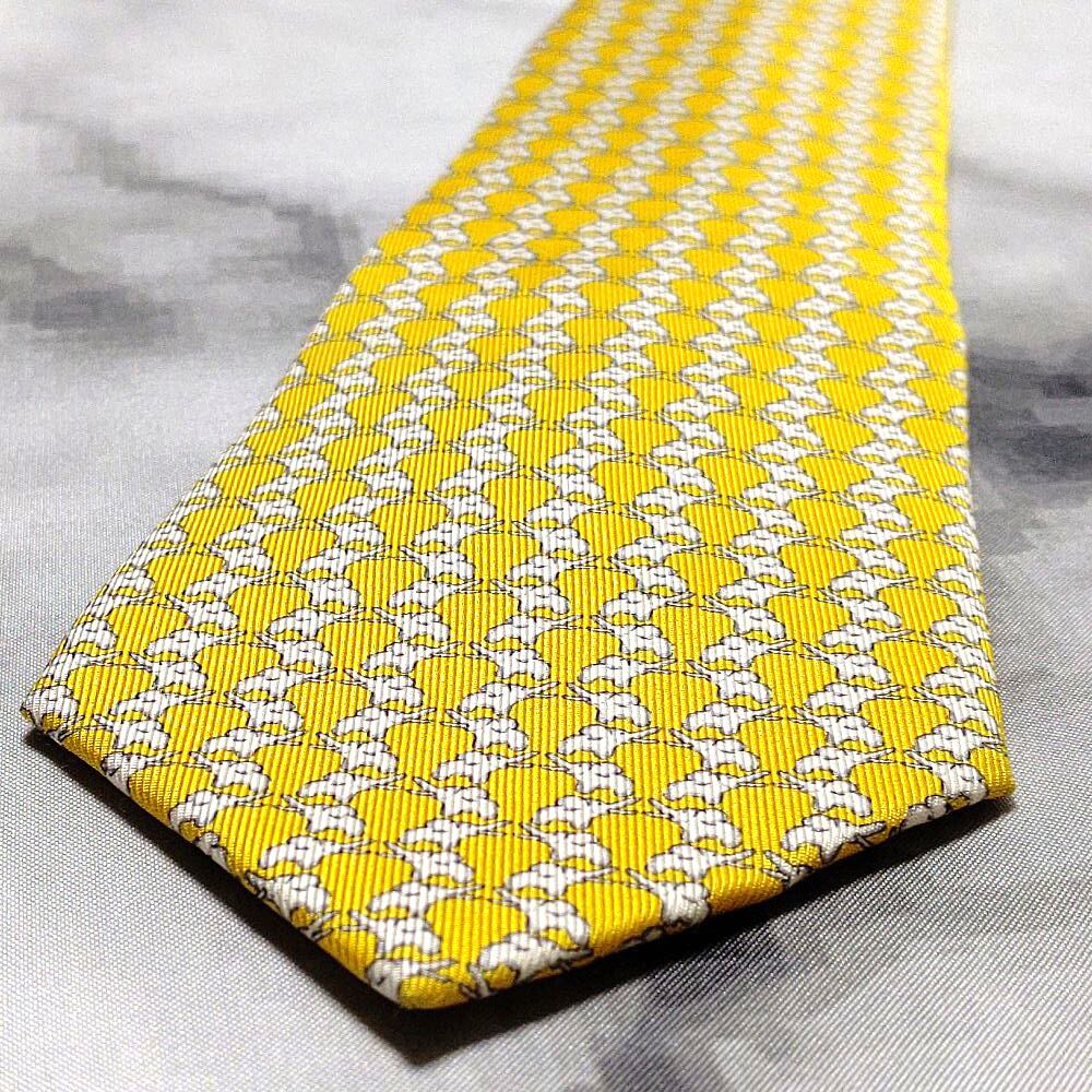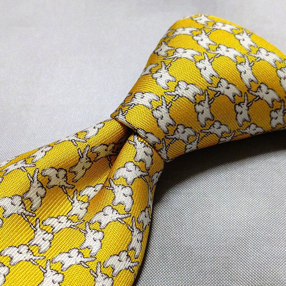 ジムトンプソン Jim Thompson 美品 未使用品 微光沢 ネクタイ ゾウ柄 象 アニマル 動物 黄系 イエロー系 J-008949