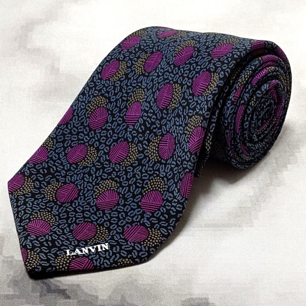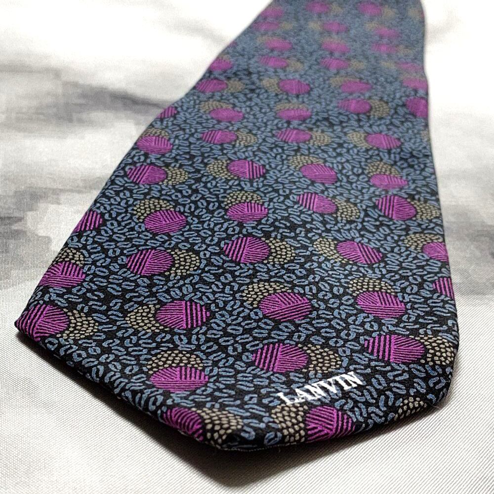ランバン LANVIN 良品 微光沢 ネクタイ イタリア製 シルク100% パターン柄 ミックス J-008951