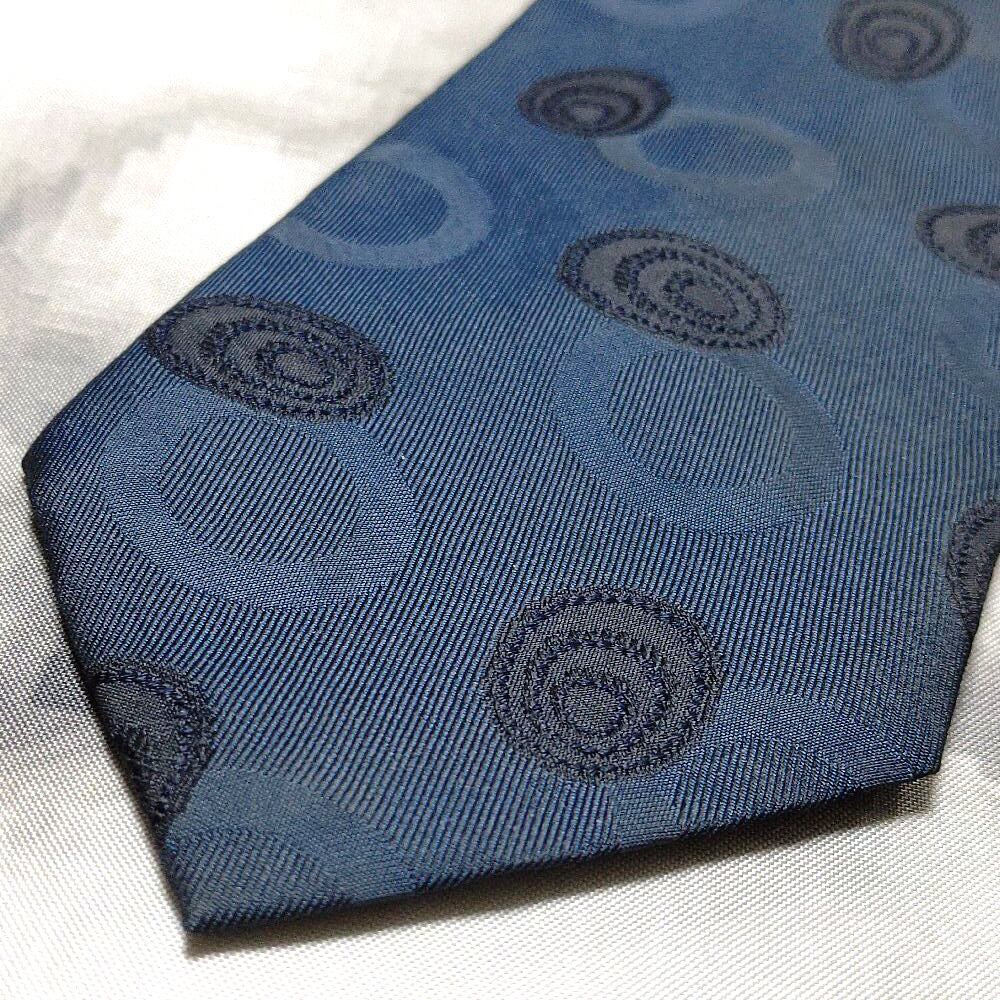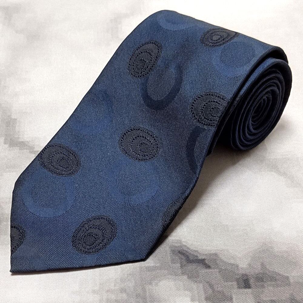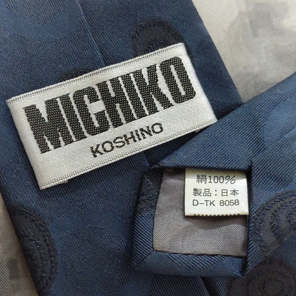 コシノミチコ KOSHINO MICHIKO 微光沢 ネクタイ 日本製 シルク100% パターン柄 濃紺系 ネイビー系 J-008954