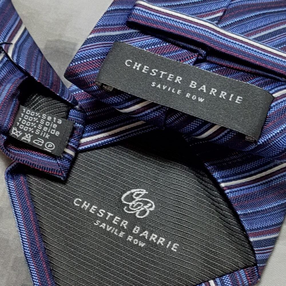 チェスターバリー CHESTER BARRIE サヴィルロウ SAVILE ROW 良品 微光沢 ネクタイ ストライプ 濃紺系 ネイビー系 J-008970