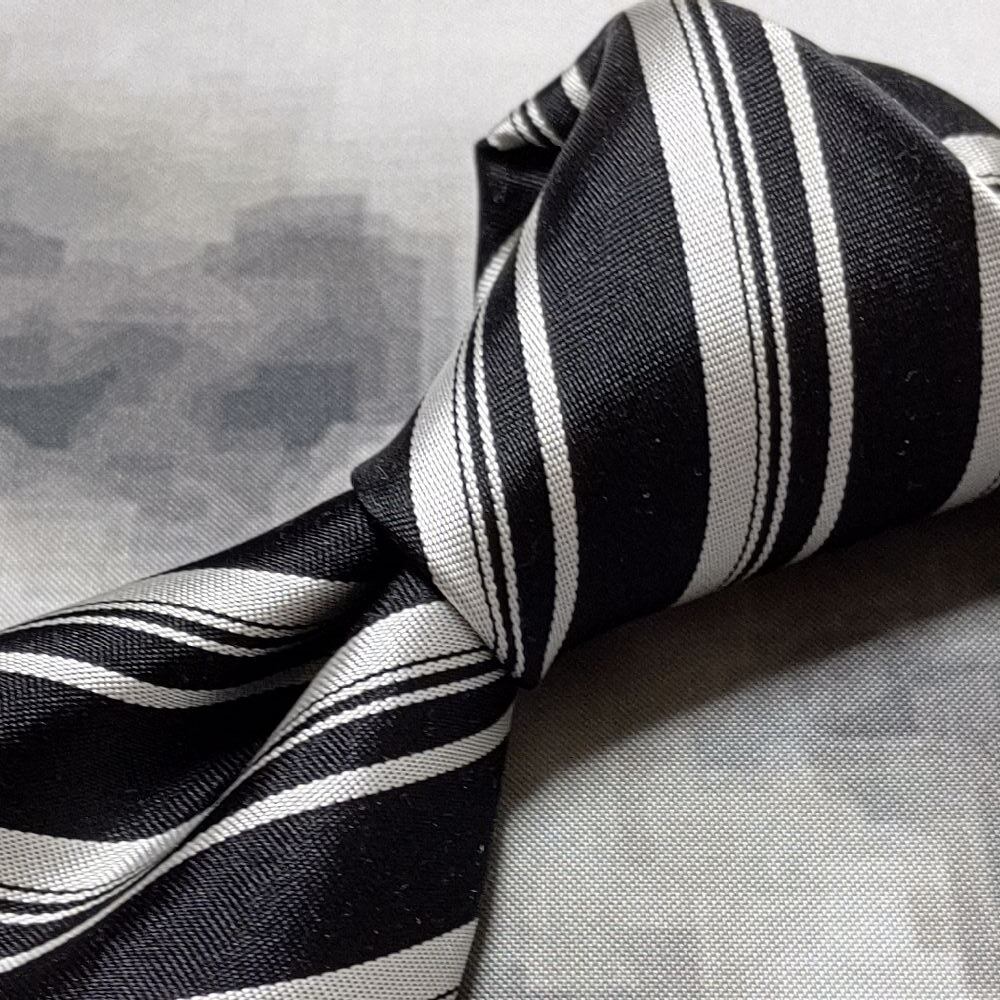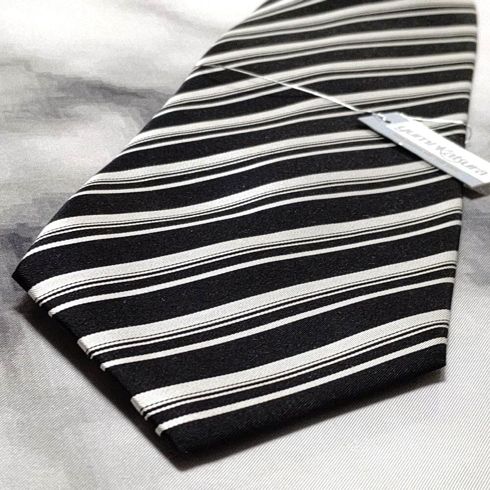 ユミ カツラ YUMI KATSURA 桂由美 美品 新品未使用タグ付 微光沢 ネクタイ ストライプ レジメンタル 白黒 K-008994