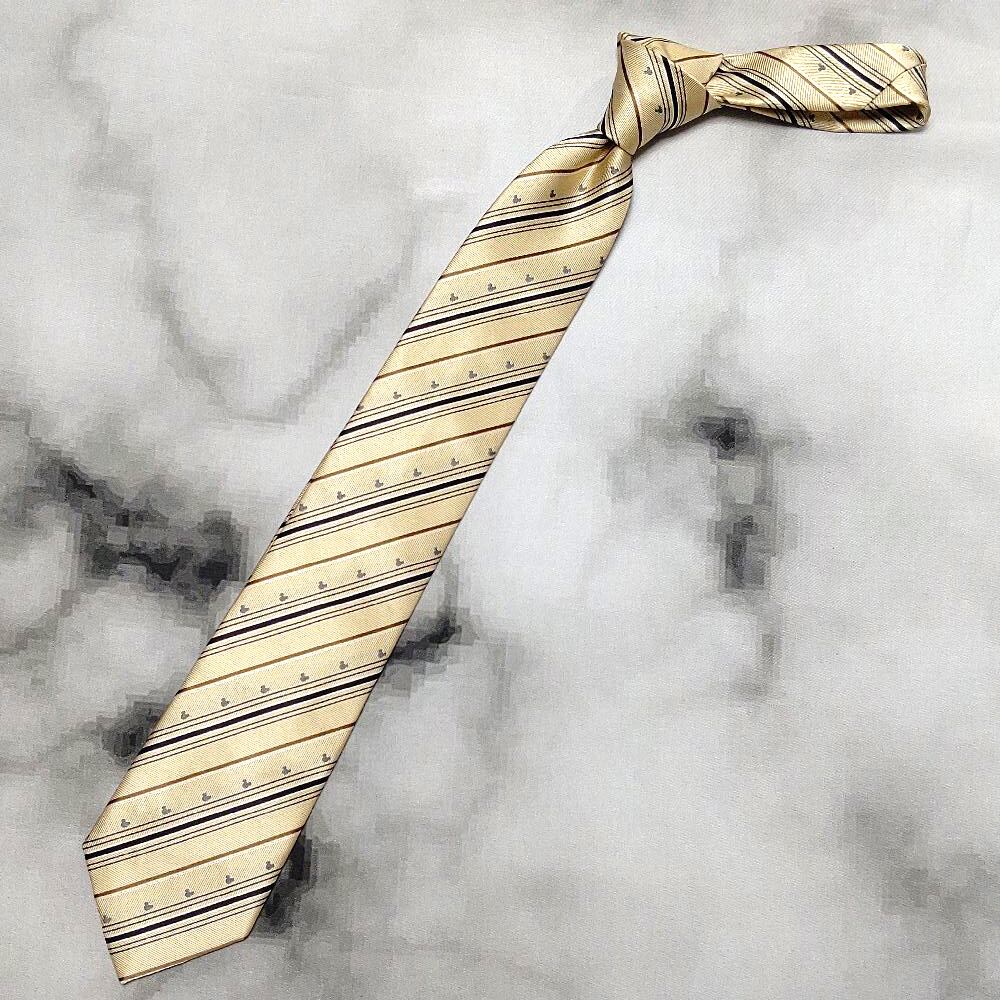 ディズニー Disney 良品 微光沢 ネクタイ ポリエステル100% ストライプ レジメンタル ミッキー シルエット K-008995