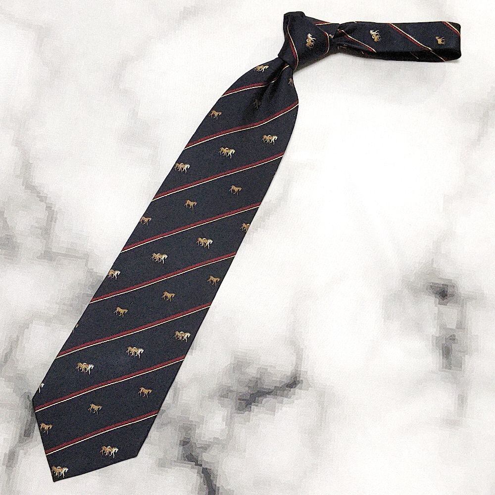 アクアスキュータム Aquascutum 良品 微光沢 ネクタイ シルク100% 馬柄 動物 アニマル 濃紺系 ネイビー系 L-009003