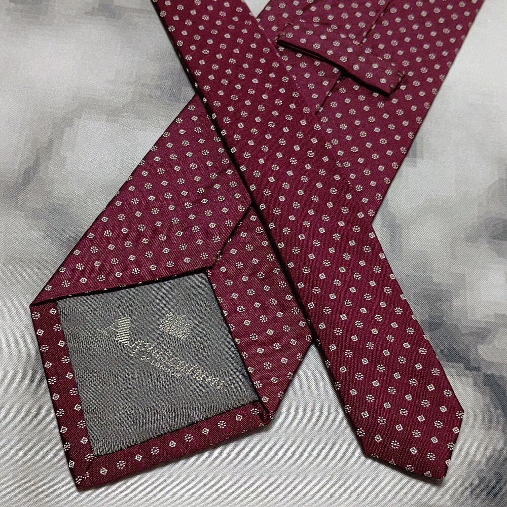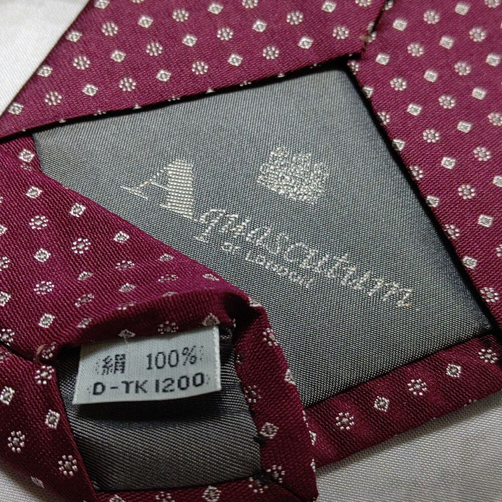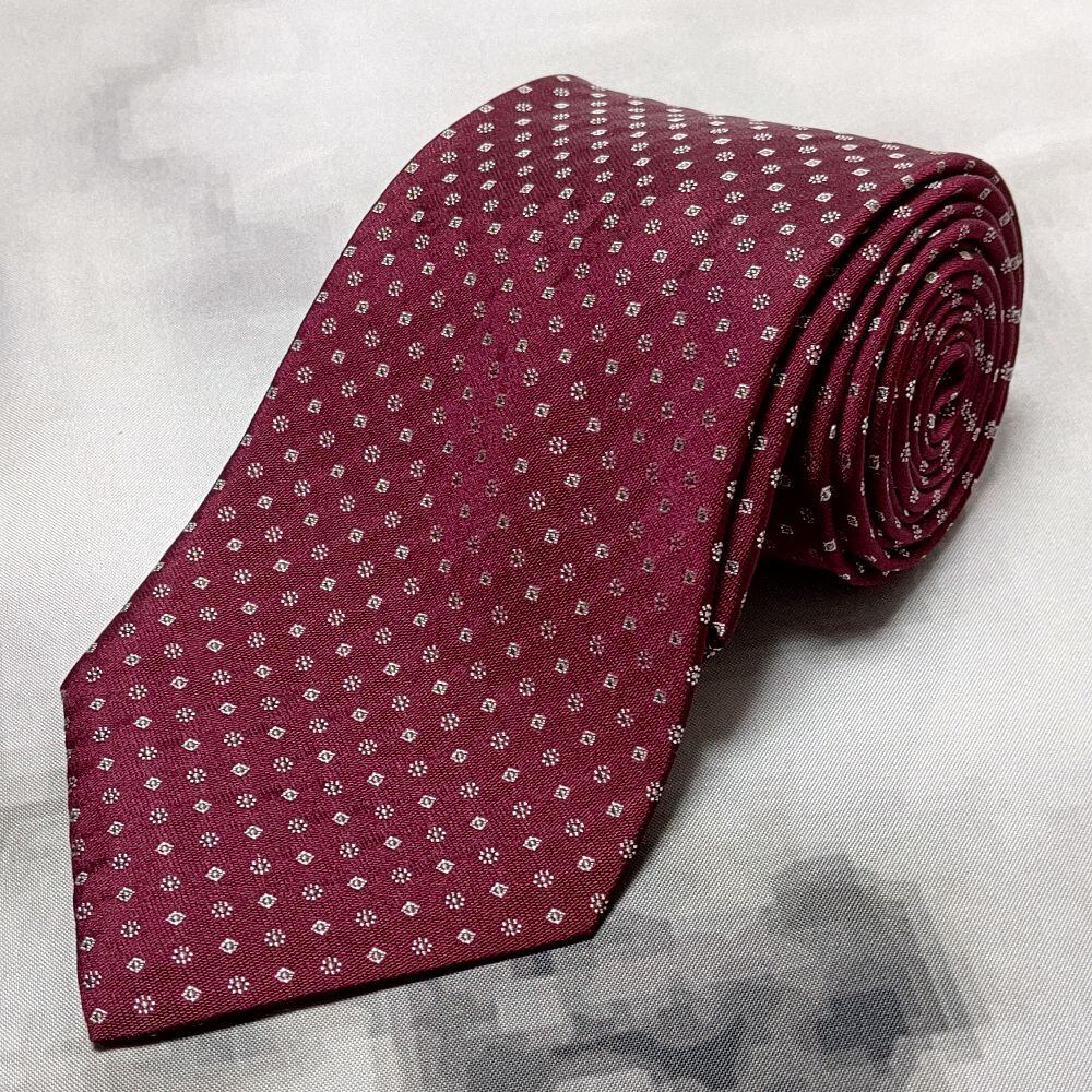 アクアスキュータム Aquascutum 良品 微光沢 ネクタイ シルク100% パターン柄 レッド系 赤系 L-009004