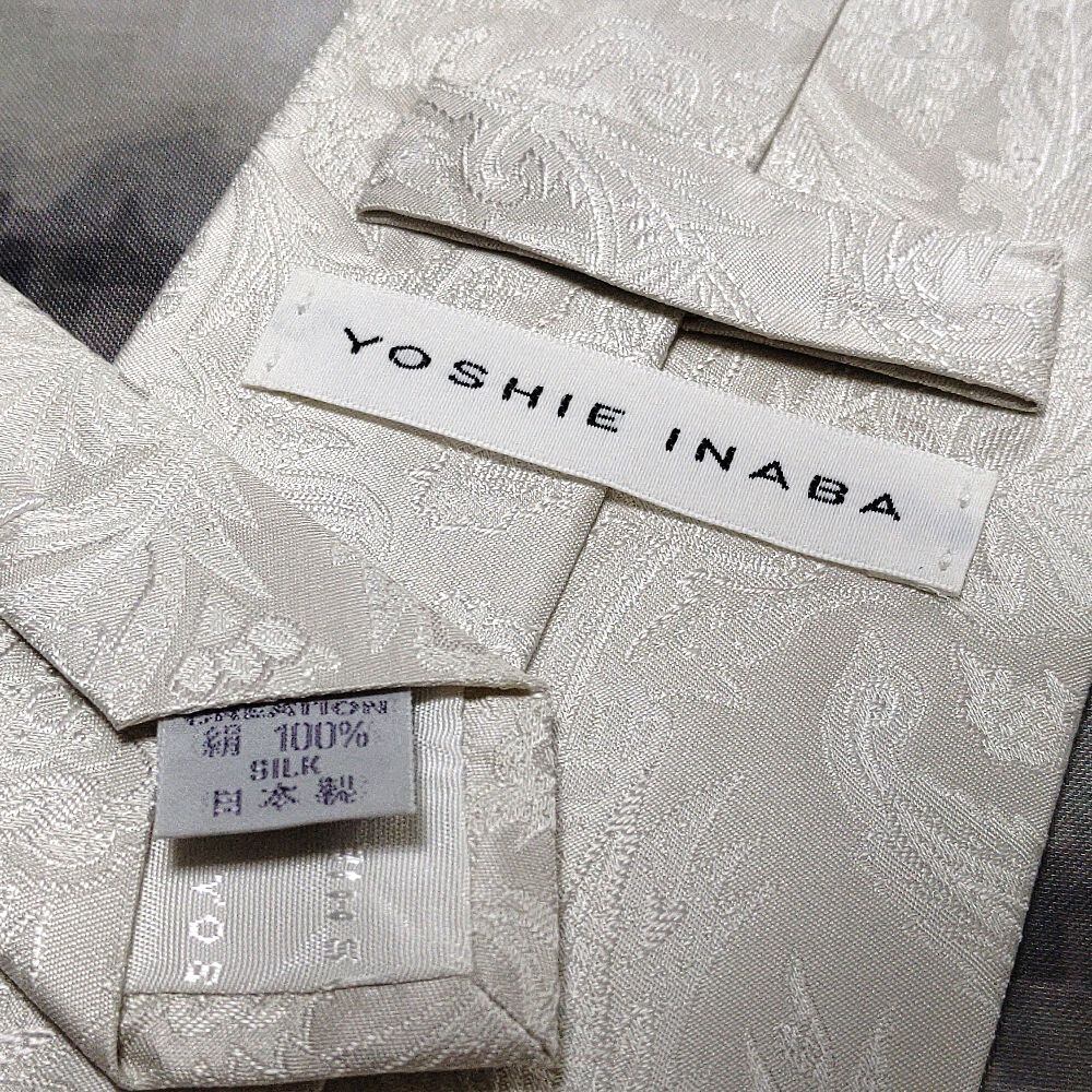ヨシエイナバ yoshie inaba 美品 未使用品 微光沢 ネクタイ 日本製 シルク100% ペイズリー調 冠婚葬祭 礼装 L-009009