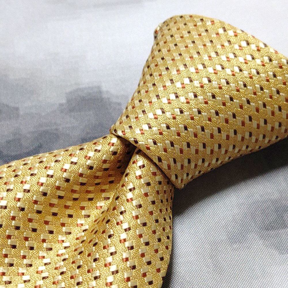 レノマ renoma U.P 美品 未使用品 微光沢 ネクタイ 日本製 シルク100% パターン柄 黄系 イエロー系 L-009013